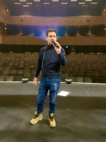 JULIEN DASSIN arrive à LIève (Belgique) avec ses musiciens ! Il a choisi de s'entourer de fameuse chorale dirigée par Robert Jamaer et c'est entouré de 200 choristes qu'il interprétera tous les succès de son père, Joe Dassin